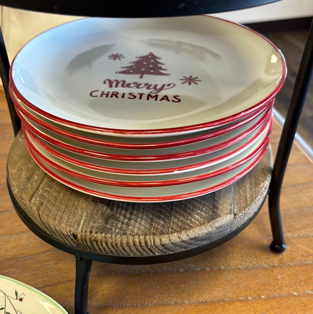 8" RED & WHITE MERRY CHRISTMAS PLATE