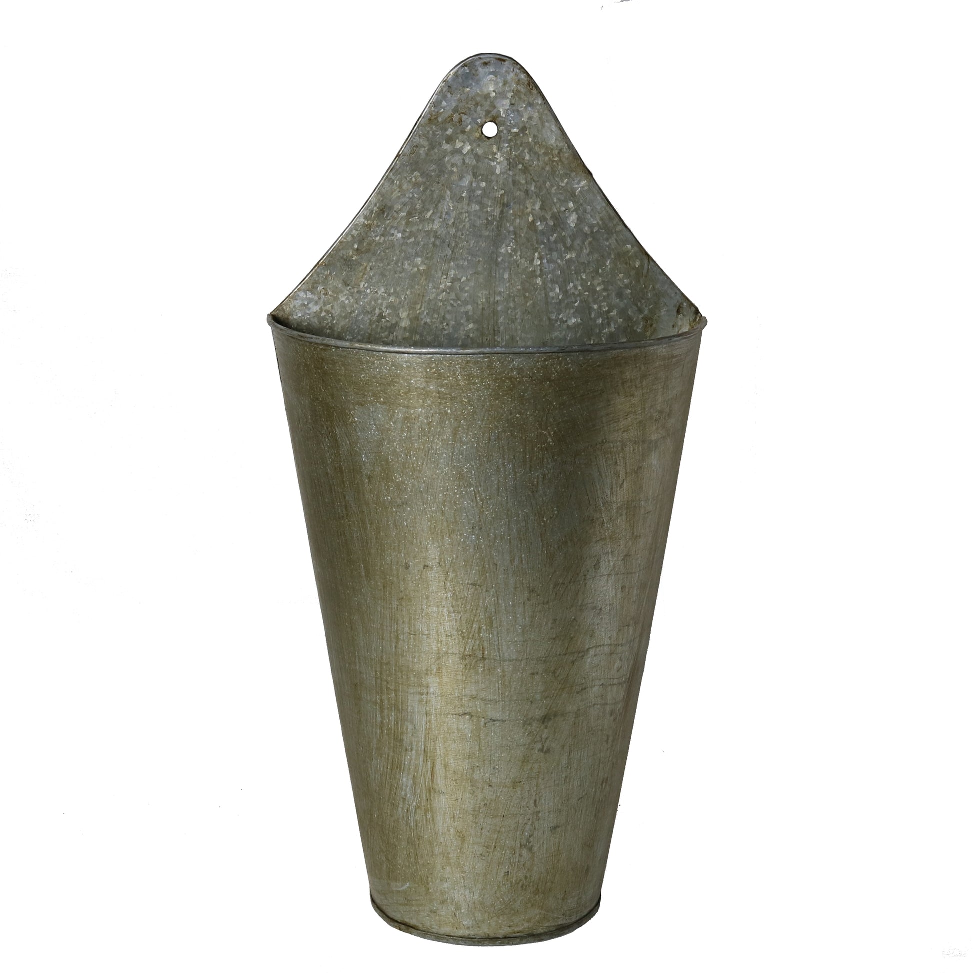 Classic European-inspired galvanized metal buckets are reconfigured in a half round shape to hang - or sit - for an Americana redo on a classic wall mounted floral arrangement.