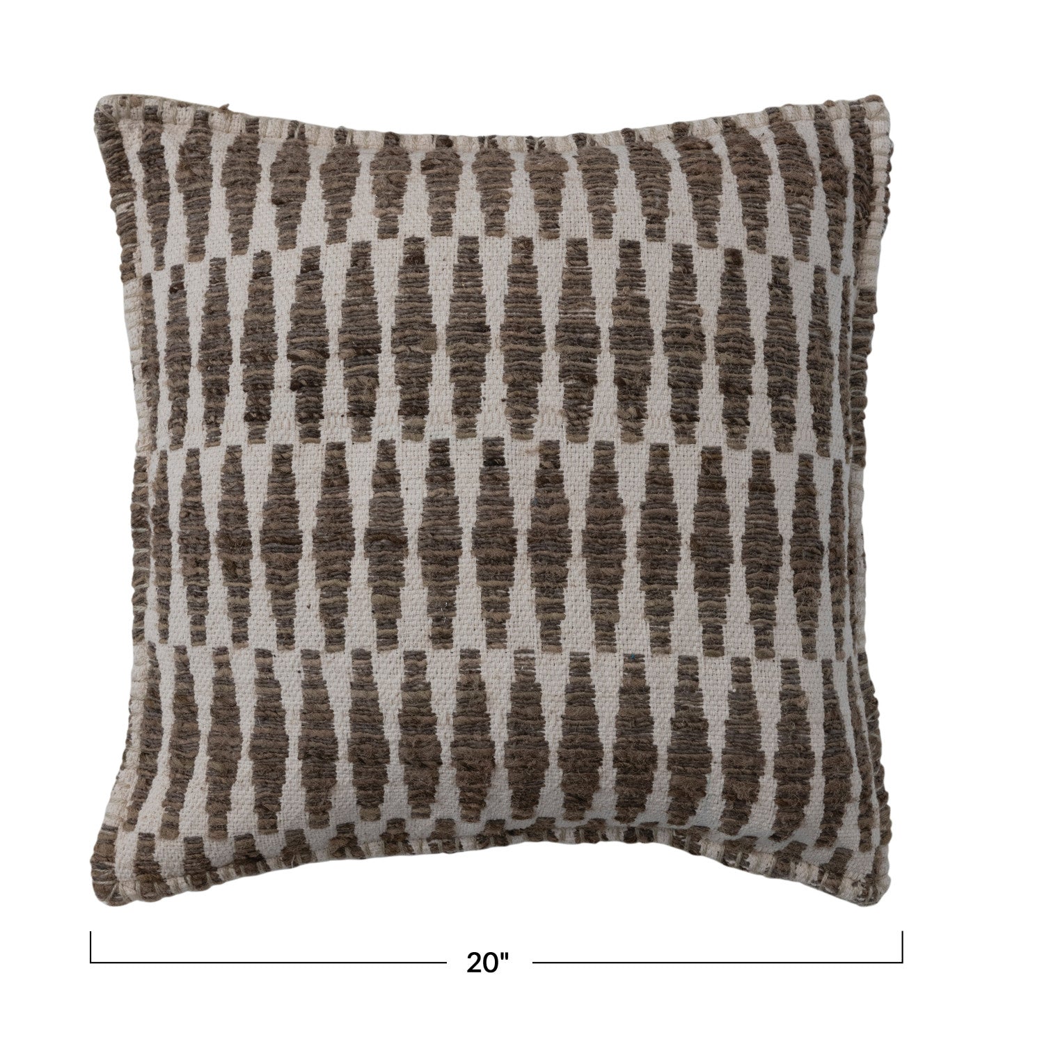 20" Square Hand-Woven Recycled Cotton Pillow w/ Geometric Pattern, Blanket Stitch & Chambray Back, Polyester Fill, Multi Color