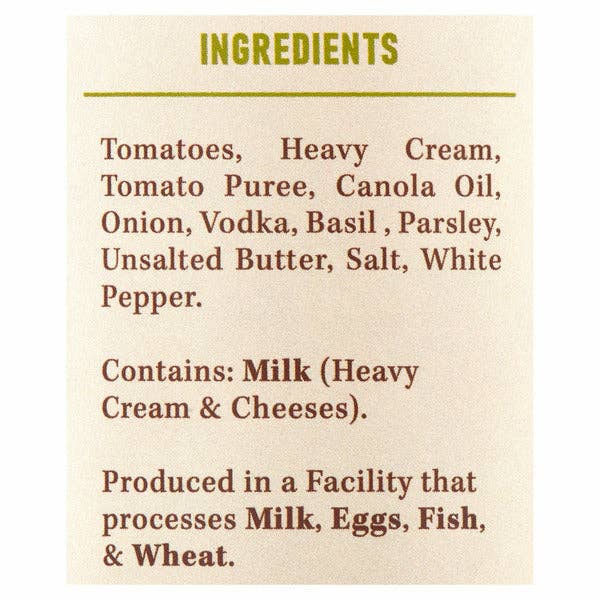 Luxurious, velvety, and utterly craveable—this Vodka Cream Tomato Sauce is the sophisticated cousin of your everyday pasta sauce. Blending imported Italian tomatoes with fresh basil, garlic, heavy cream, and butter, it's finished with a splash of vodka that ties everything together into pure silky perfection. Part of Di Bruno Bros.' celebrated Private Collection alongside Arrabbiata and Tomato Basil, this 24 oz jar transforms simple pasta into an elegant dinner. One spoonful and you'll understand why this sauce deserves a starring role on your table.