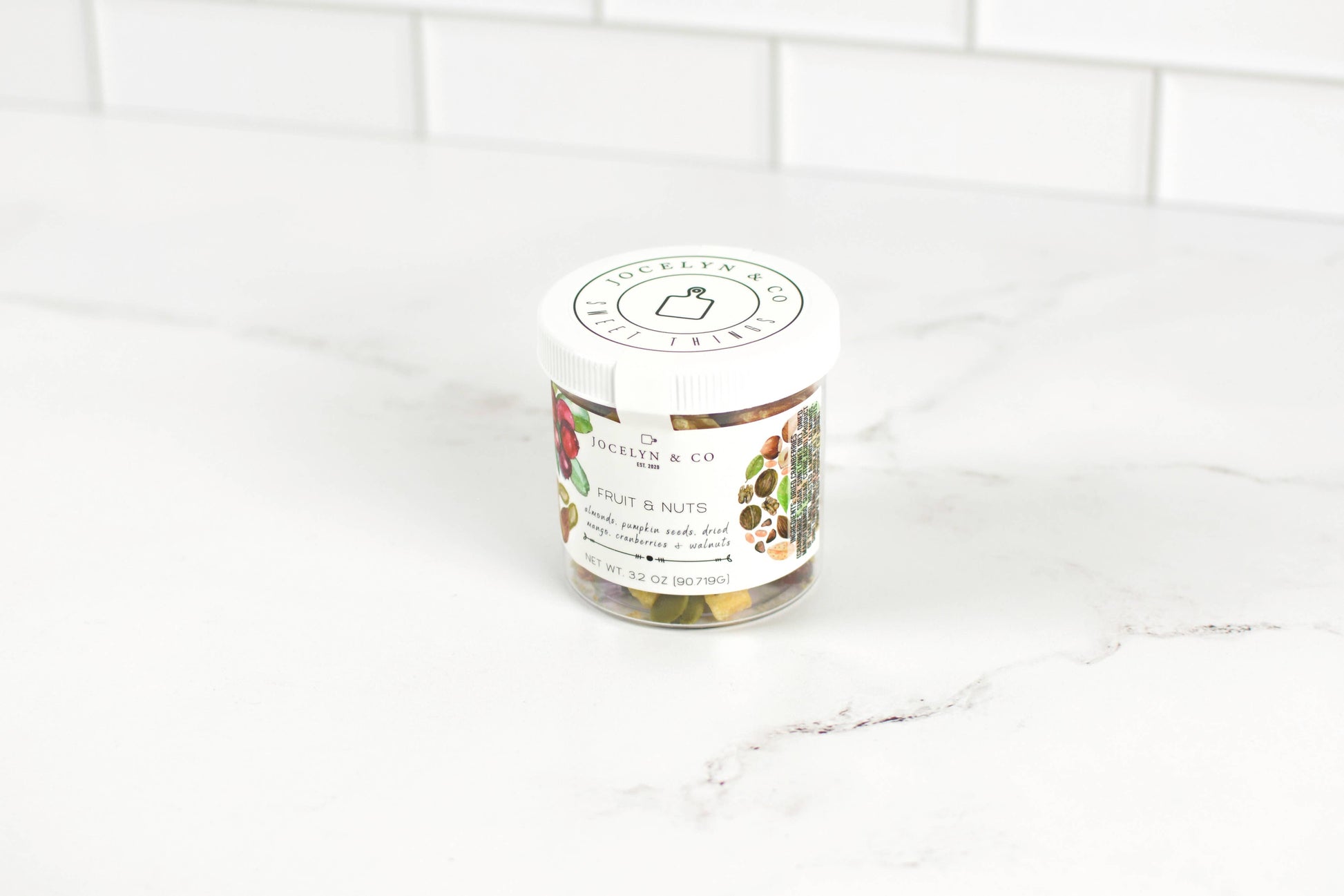 Presented in a 5oz jar, our Fruit & Nuts mix is beautifully adorned with our signature luxe designed label, adding a touch of elegance to your snacking routine.
