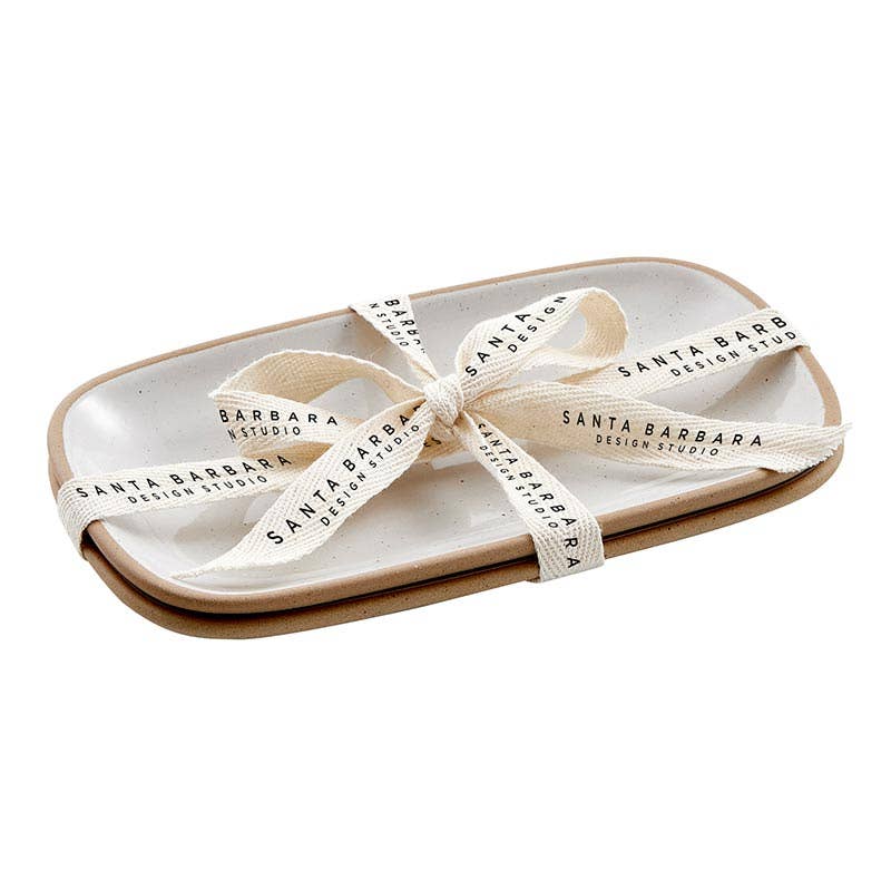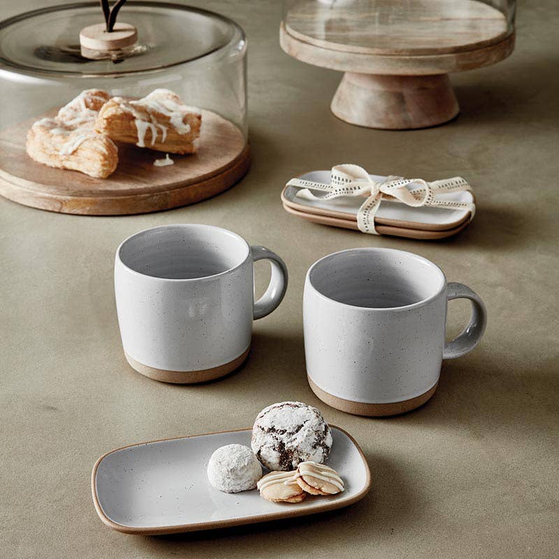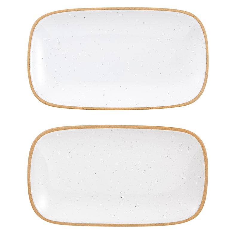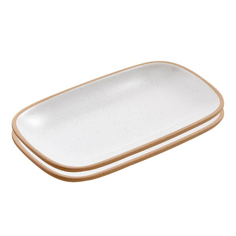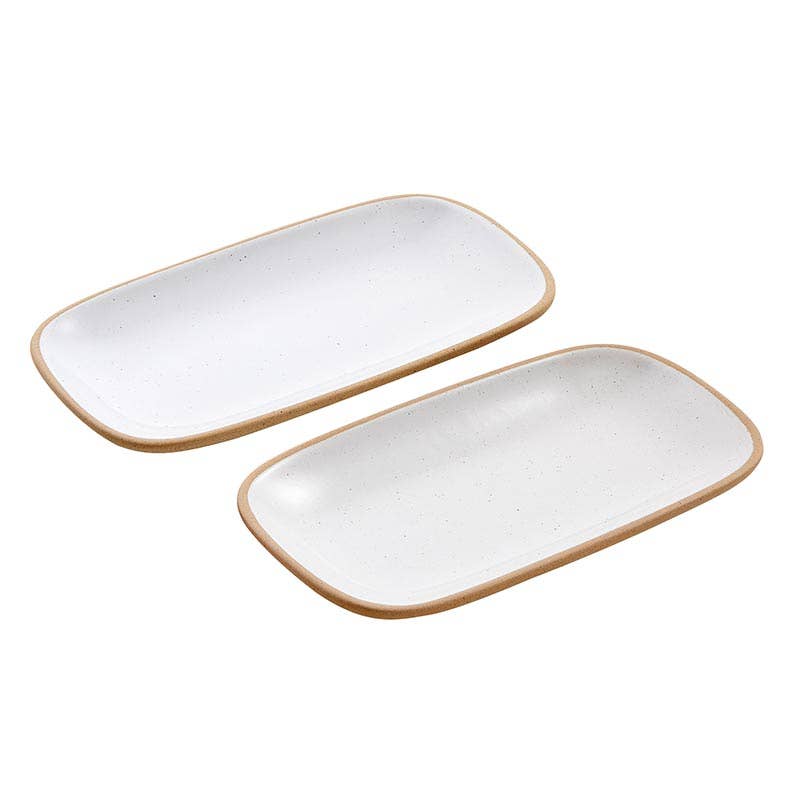 Set of 2 organically designed plates with a glazed finish and lifted painted rim. Perfect for serving small snacks and cookies with coffee.